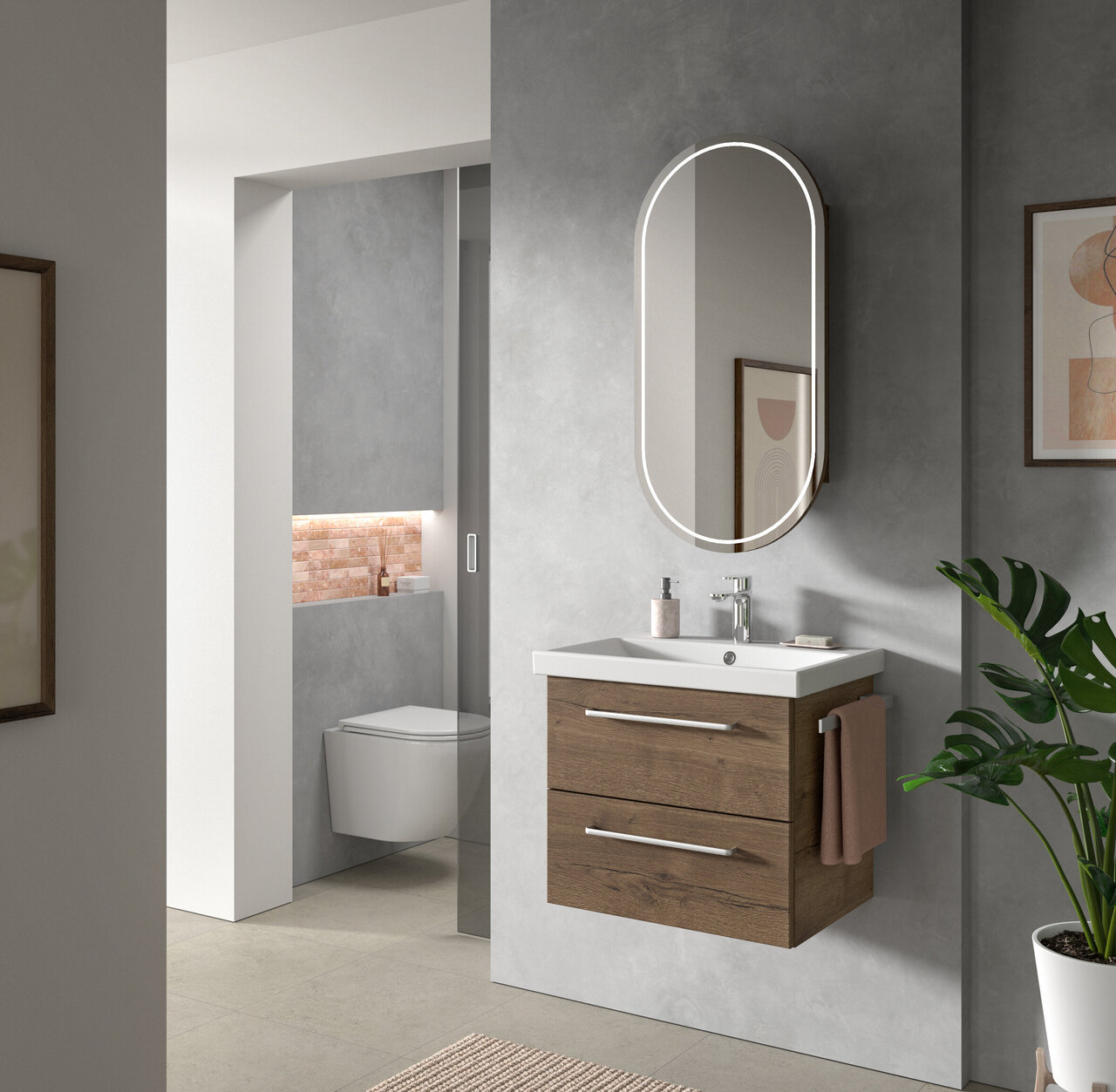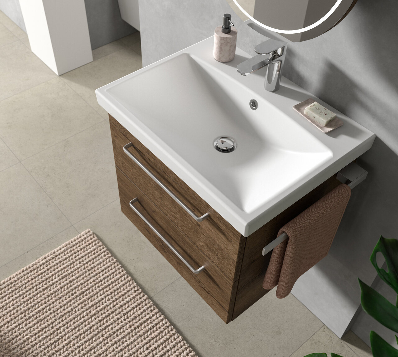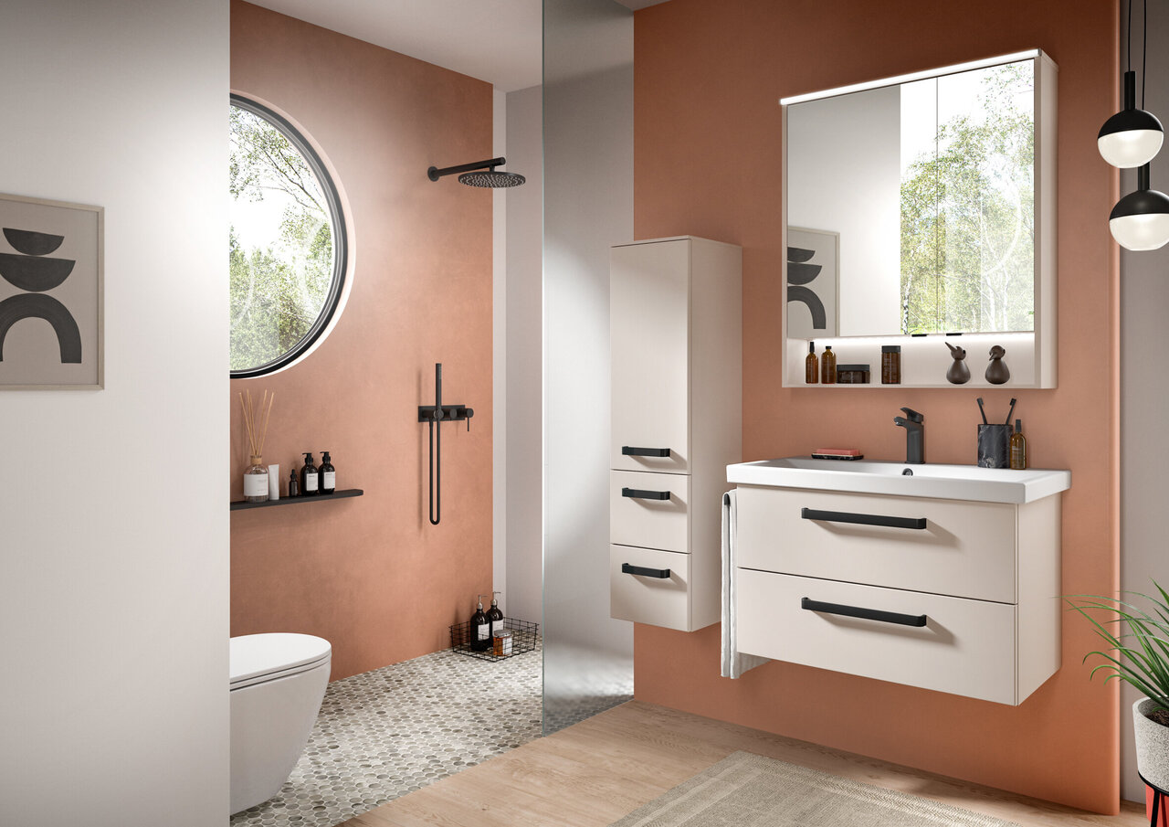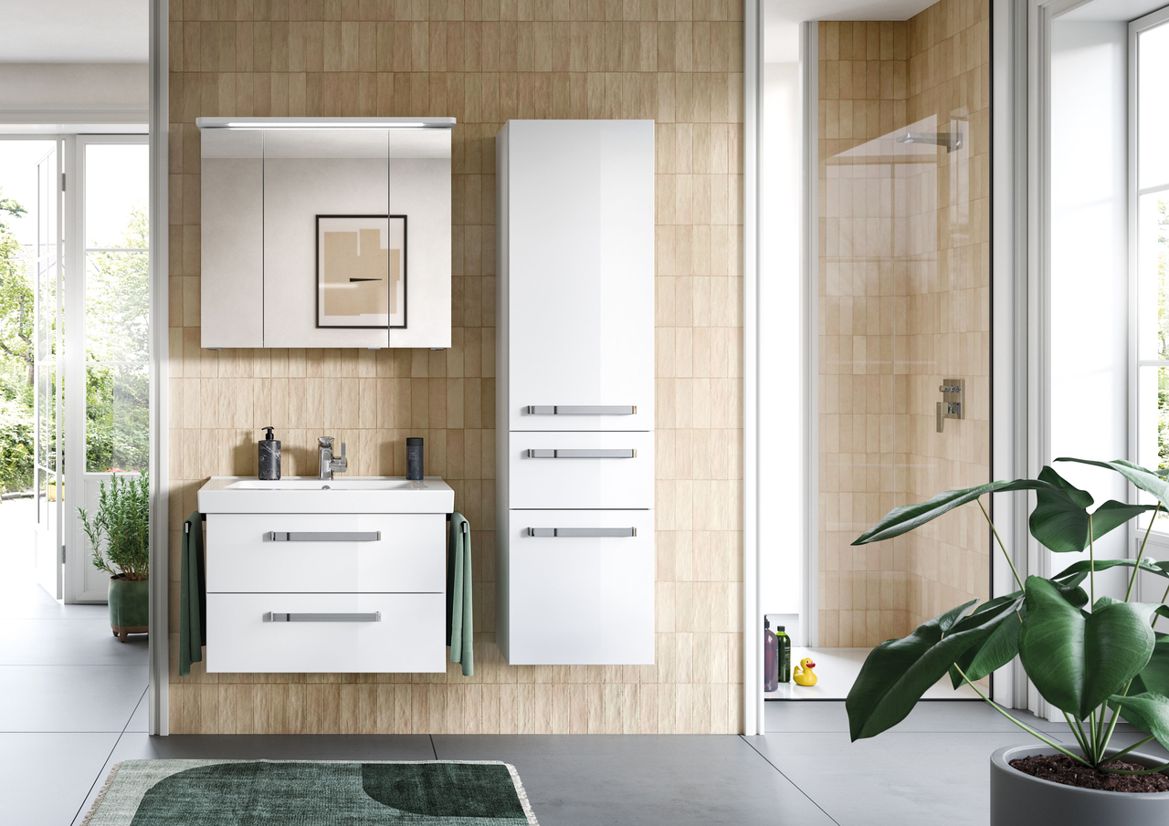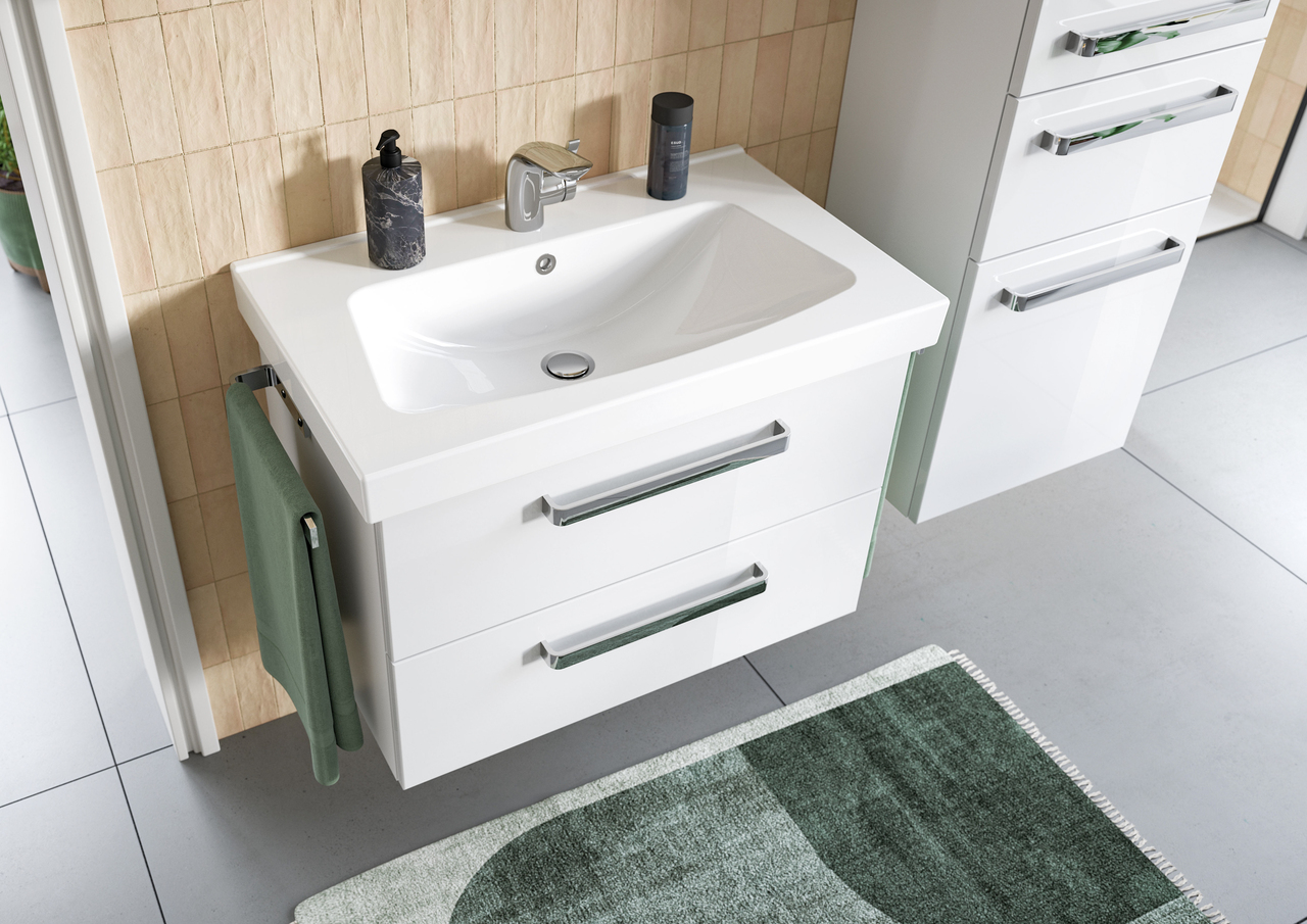 Represents particular expertise where ceramic washbasins are concerned: two different washbasin designs, each available in three different sizes, provides an all-encompassing offering that leaves nothing to be desired. While the BELO version charms with its straight classical lines, the GIRONA stands out thanks to its cubic modern design. The invariably fresh and harmonious designs and wide range of décors, combined with the numerous additional units and its practical opportunities transform The range of products has been finalised, meaning you can now choose your bathroom furniture. Let’s go!