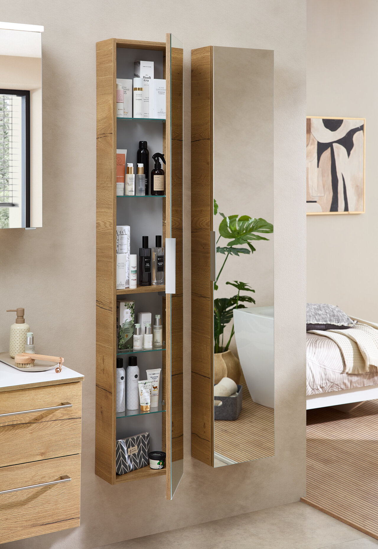 A great variaty of single furniture are complementing the diverse offer of Pelipal in a perfect way. They can be combiened with all the other furniture and offer all front and carcass styles. There are shelves, dressing tables, seats and other practical items to discover.