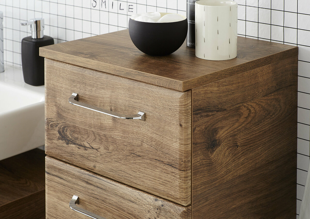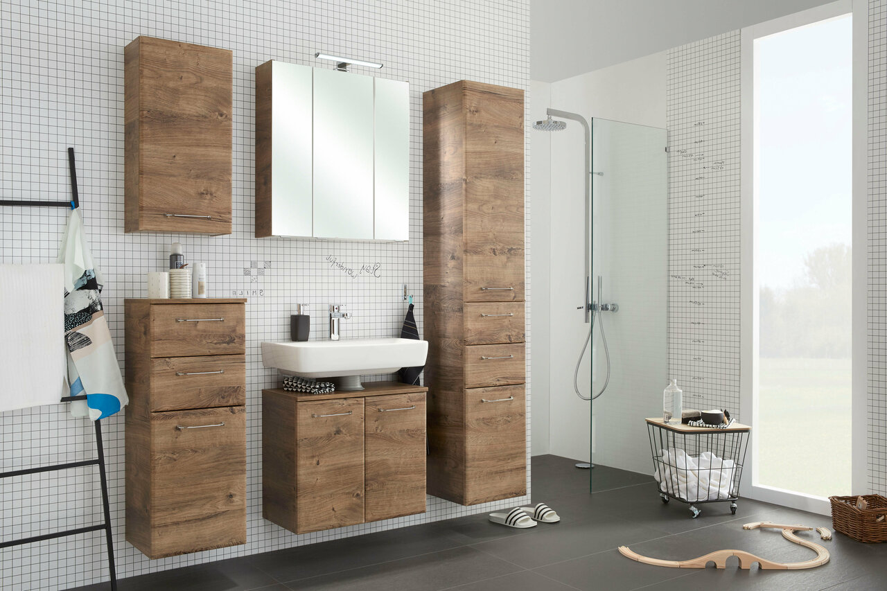 QUICKSET 943 is made for the lovers of a rustic lifestyle. The dark oak look is very natural. The design itself is straight an modern. QUICKSET 943 additionlly offers many space an possibilties for all your bathroom stuff.
